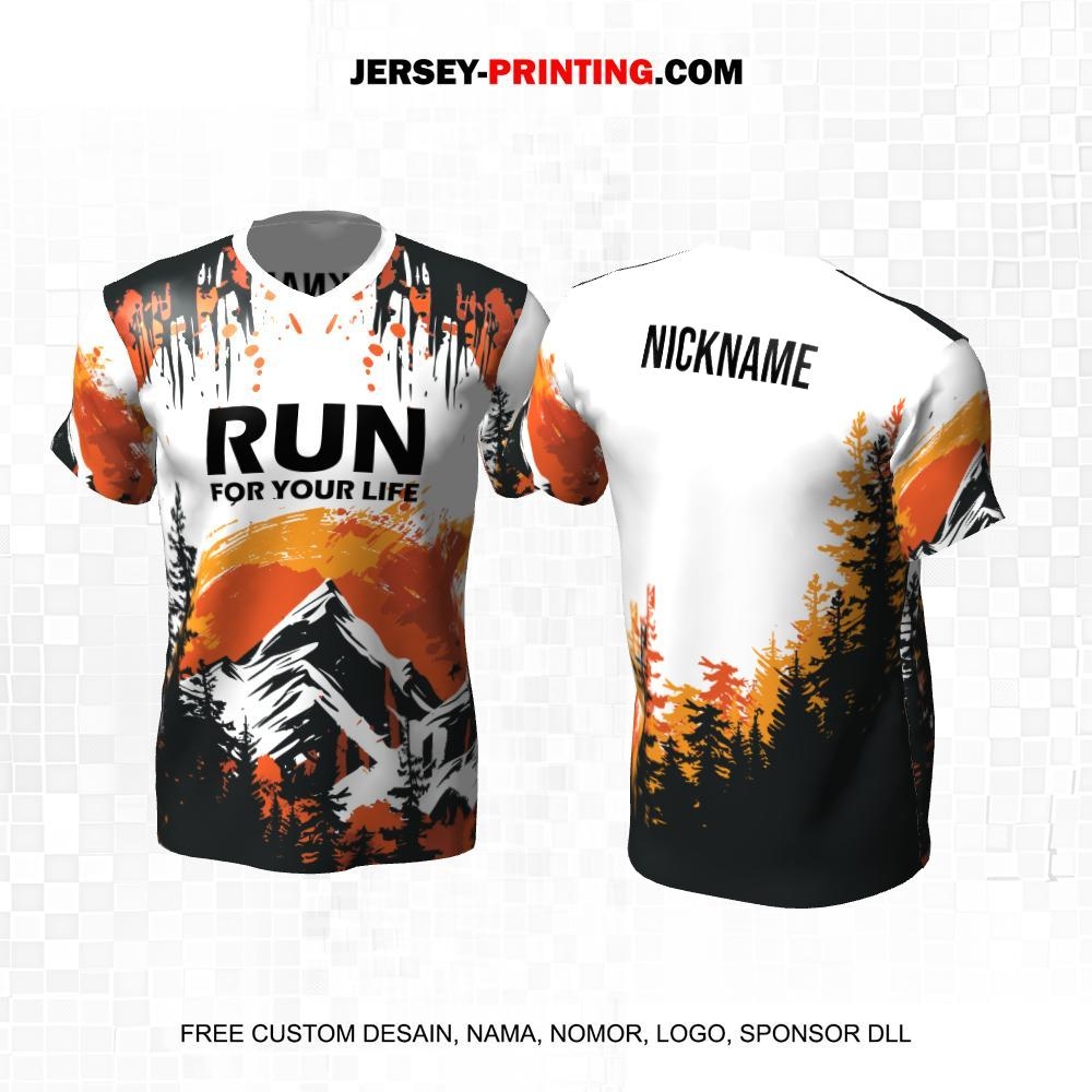 Jersey Lari Putih Motif Pemandangan Alam Gunung 88
