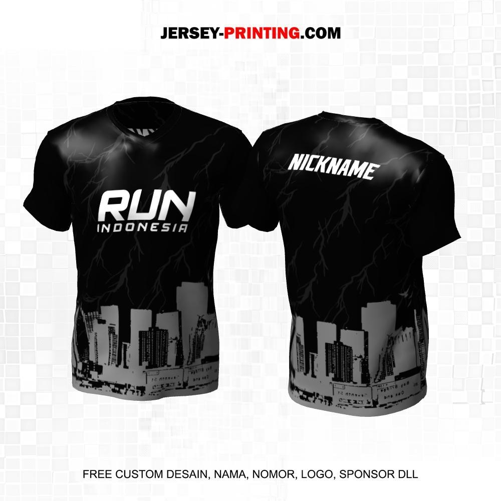Jersey Lari Hitam Motif Petir Gedung Perkotaan 95