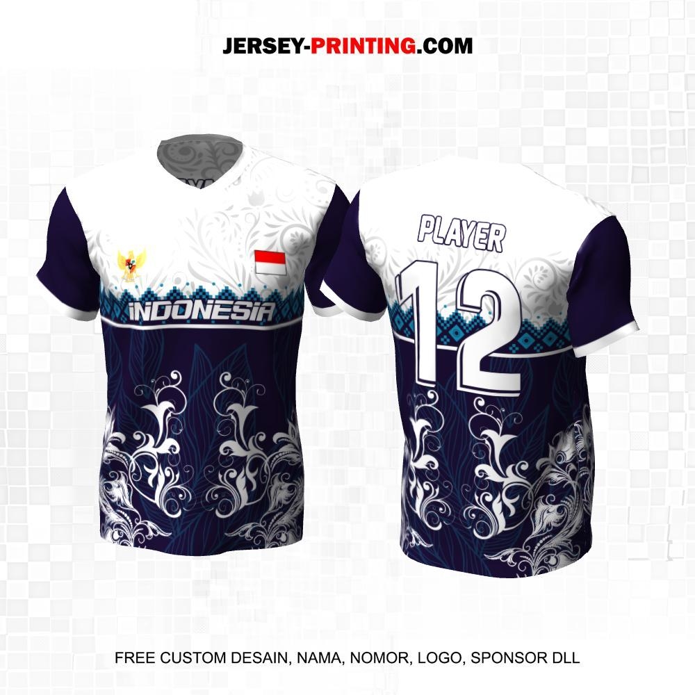 Jersey Futsal Putih Navy Motif Batik Daun 278