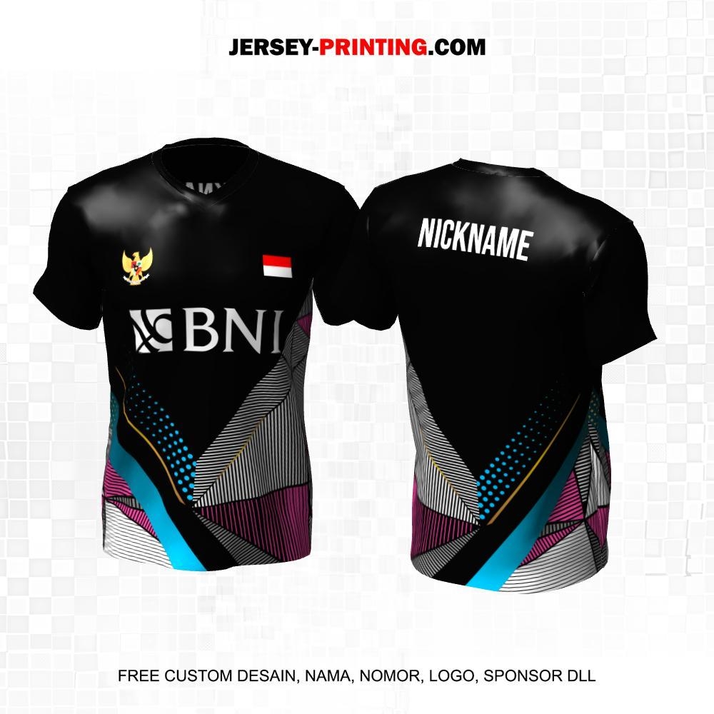 Jersey Badminton Hitam Motif Abstrak Garis Polkadot 82
