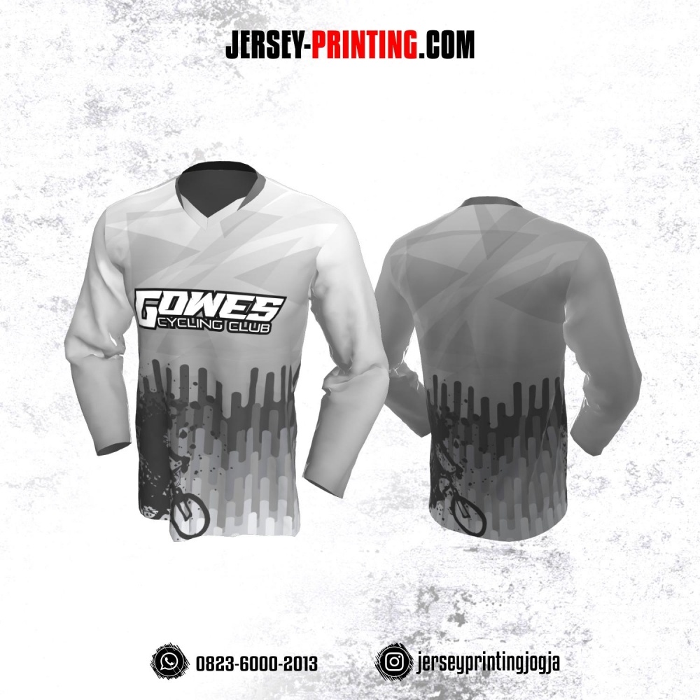 Jersey Gowes Sepeda Abu Puzzle Lengan Panjang