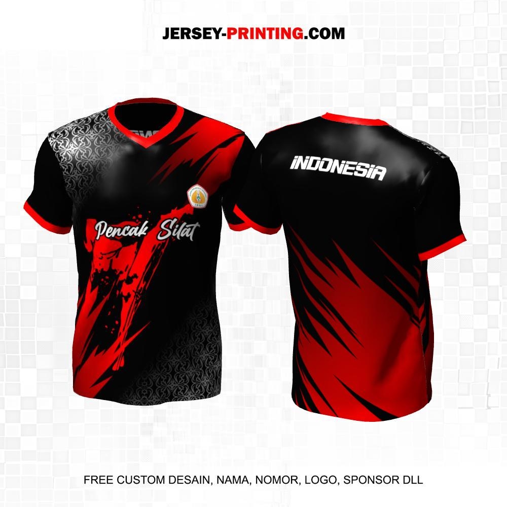 Jersey Pencak Silat Hitam Merah Motif Abstrak Batik 43