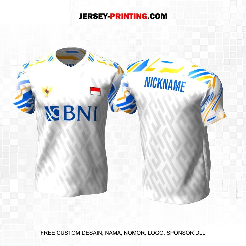 Jersey Badminton Putih Motif Abstrak Geometris 85