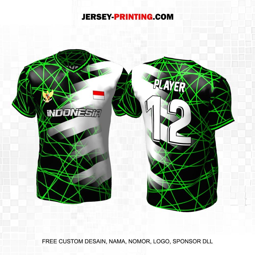 Jersey Futsal Hitam Hijau Putih Motif Abstrak 318