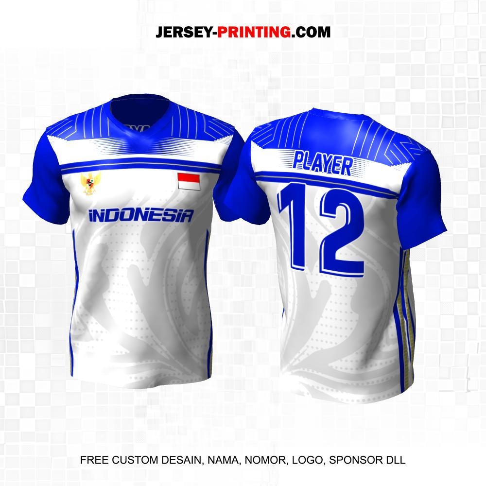 Jersey Futsal Putih Biru Motif Abstrak Garis Polkadot 322