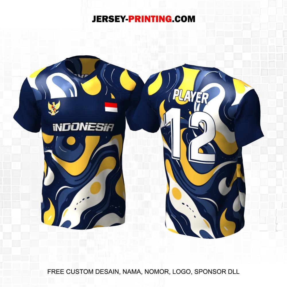 Jersey Futsal Biru Kuning Putih Motif Abstrak 323