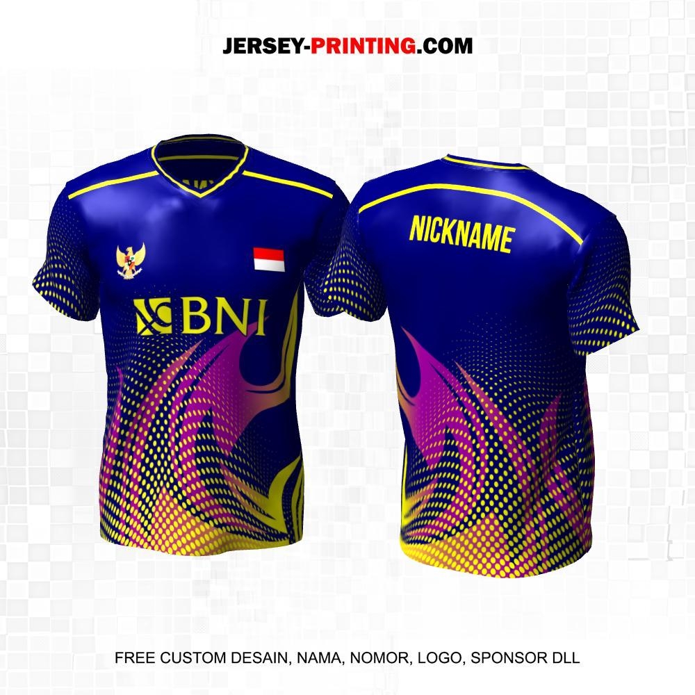 Jersey Badminton Navy Ungu Kuning Motif Abstrak Polkadot 86