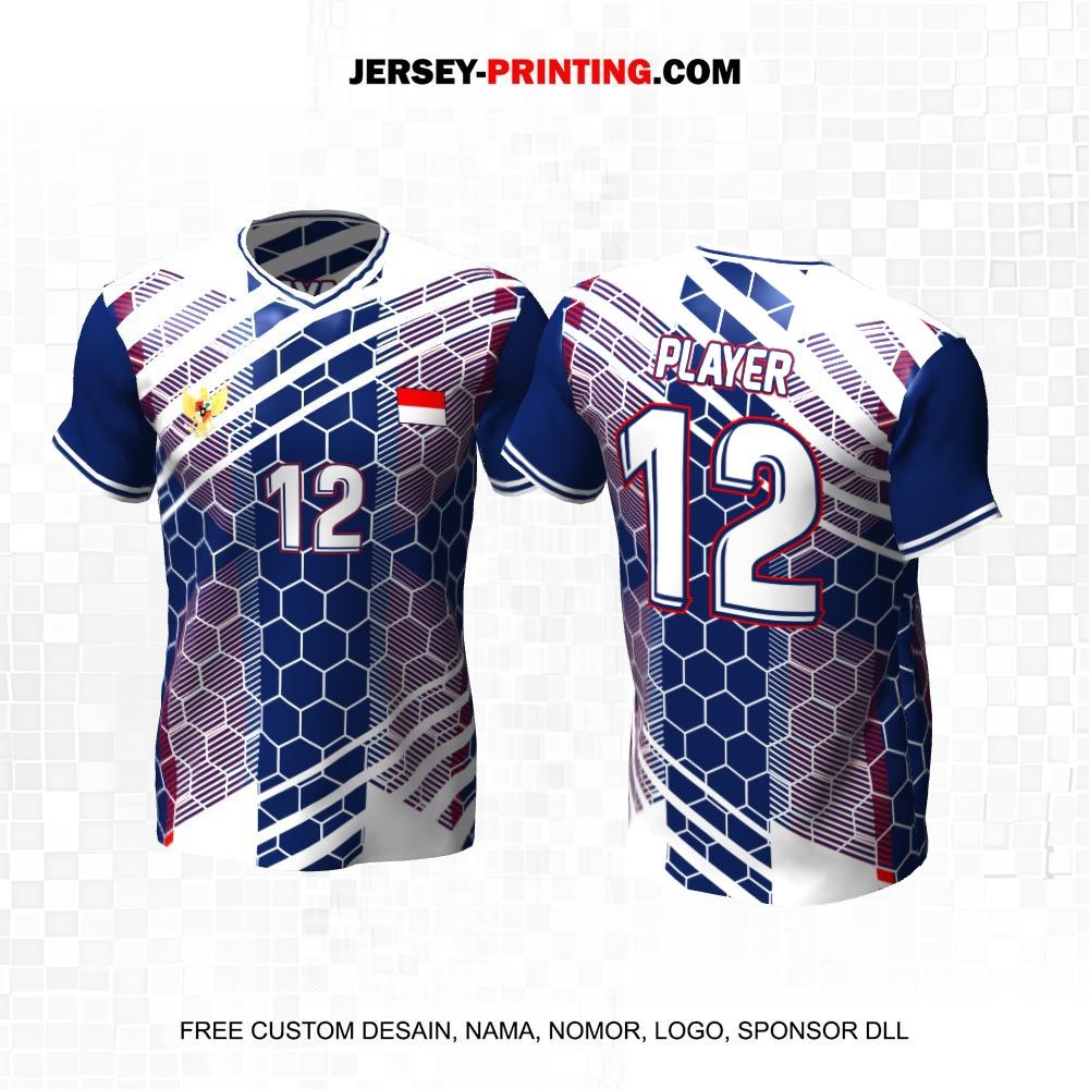 Jersey Volly Biru Putih Motif Abstrak Garis Honeycomb 87