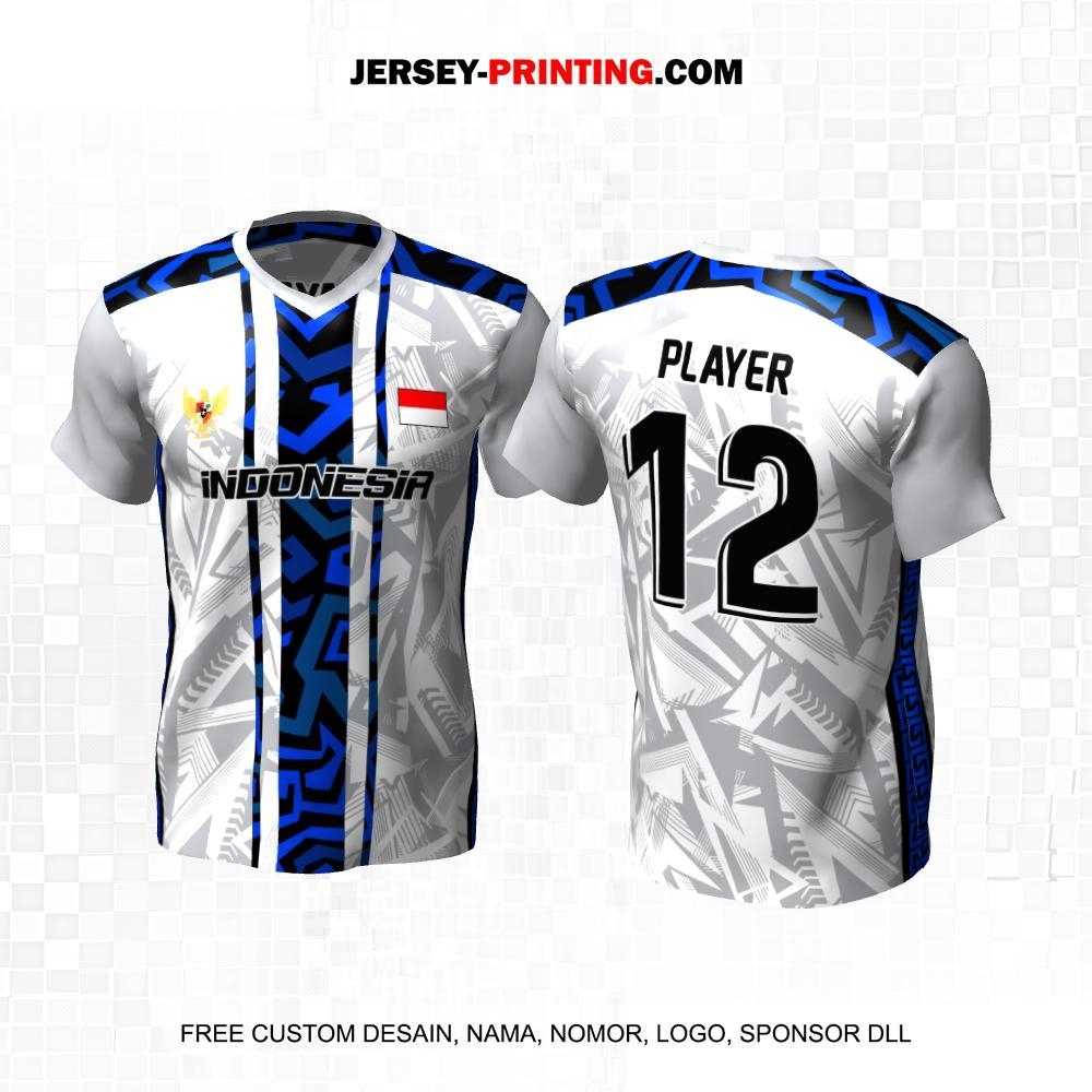 Jersey Futsal Putih Abu Biru Motif Abstrak 337