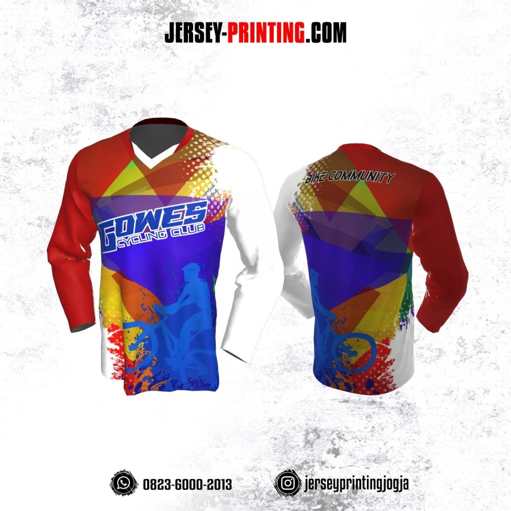 Jersey Gowes Sepeda Merah Biru Ungu Lengan Panjang