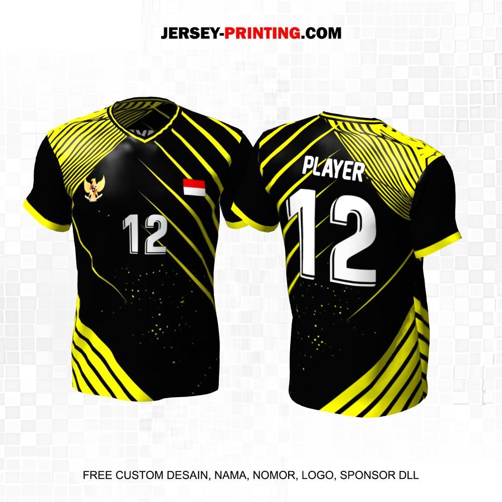 Jersey Volly Hitam Kuning Motif Abstrak Garis 109