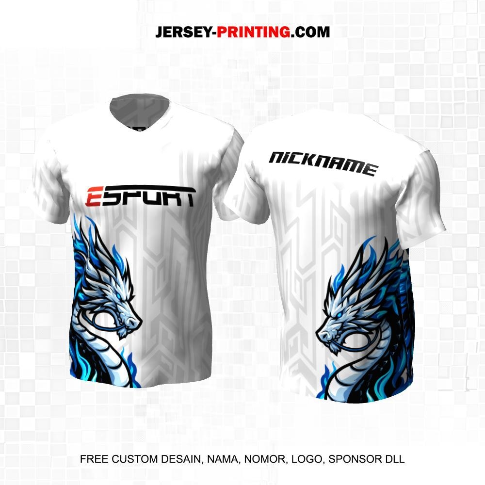 Jersey Gaming Esports Putih Motif Abstrak Naga 59