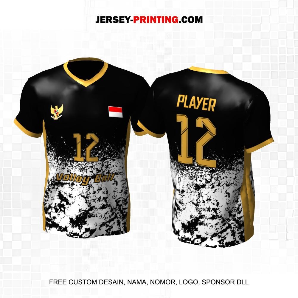Jersey Volly Hitam Putih Gold Motif Abstrak 114