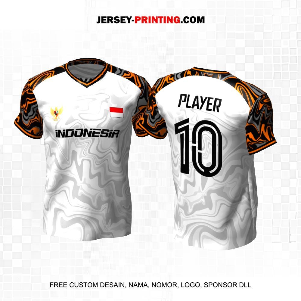 Jersey Futsal Putih Hitam Orange Motif Abstrak 388