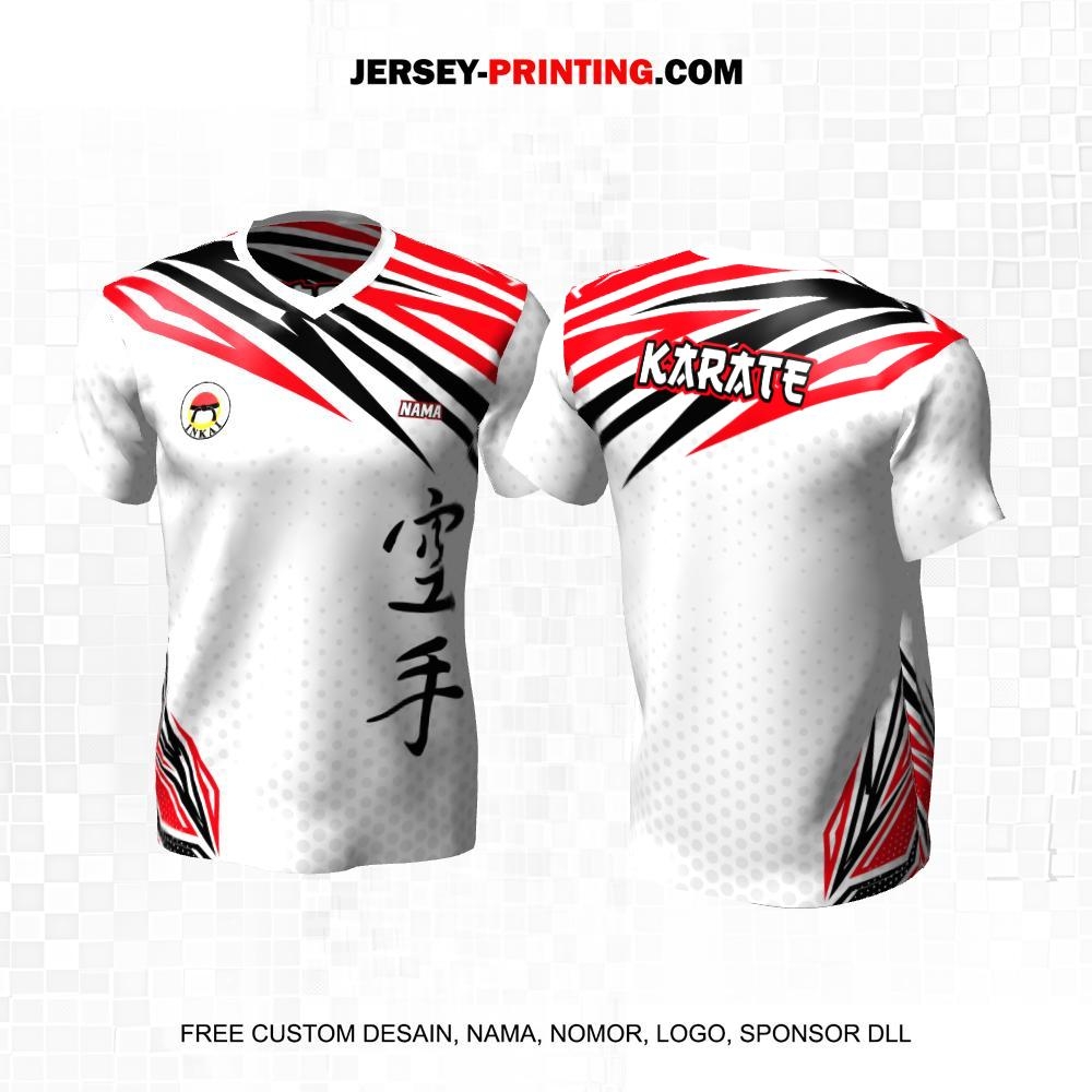 Jersey Karate Putih Merah Hitam Motif Abstrak Polkadot 43