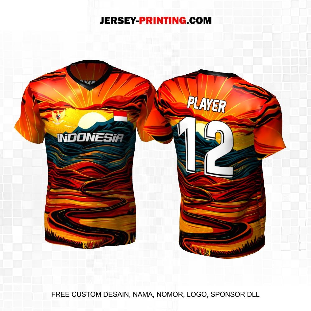 Jersey Futsal Orange Motif Pemandangan Alam 390