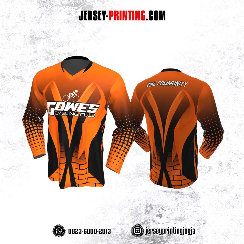 Jersey Gowes Sepeda Orange Hitam Batu Bata Lengan Panjang
