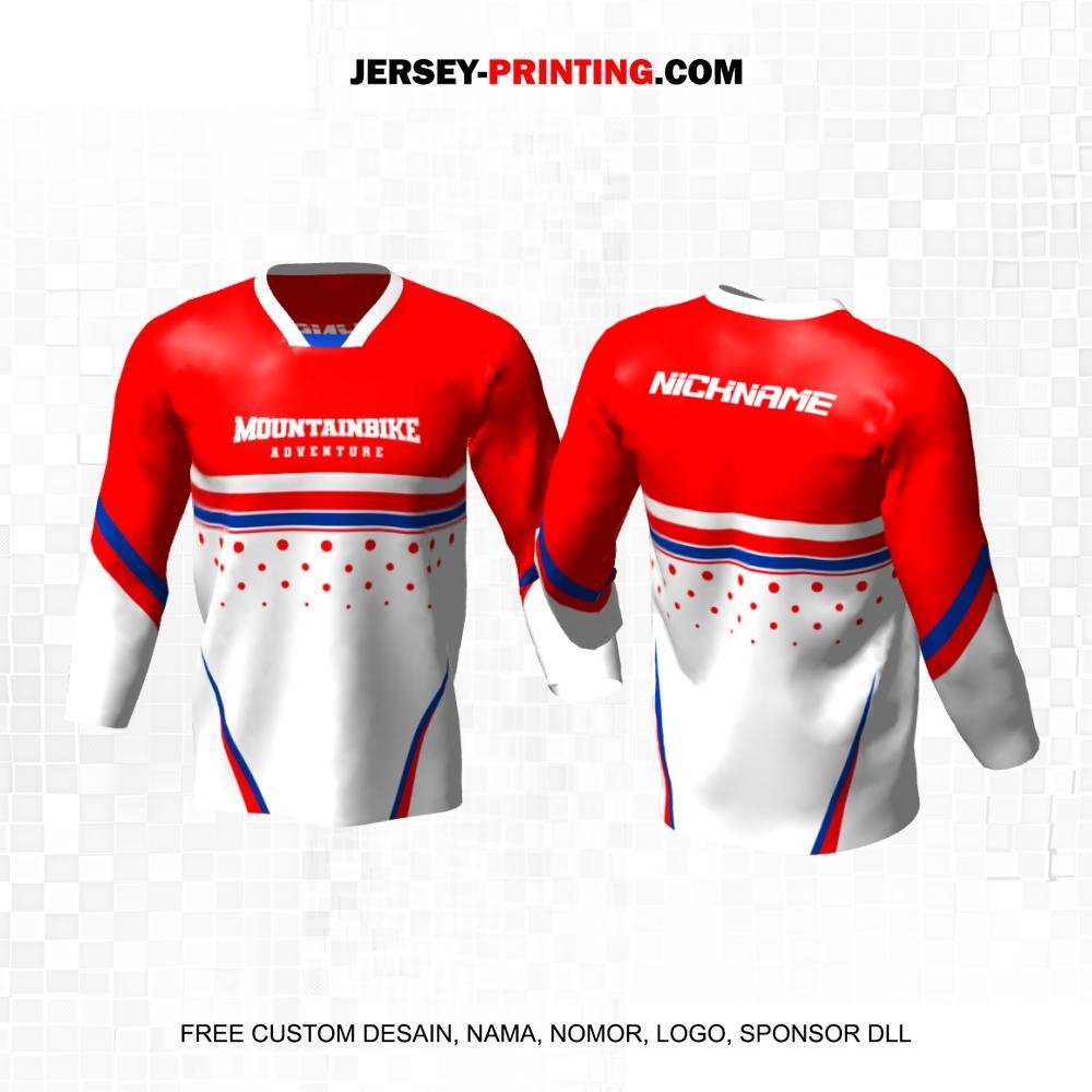 Jersey Gowes Sepeda Downhill Merah Putih Motif Garis Polkadot 34
