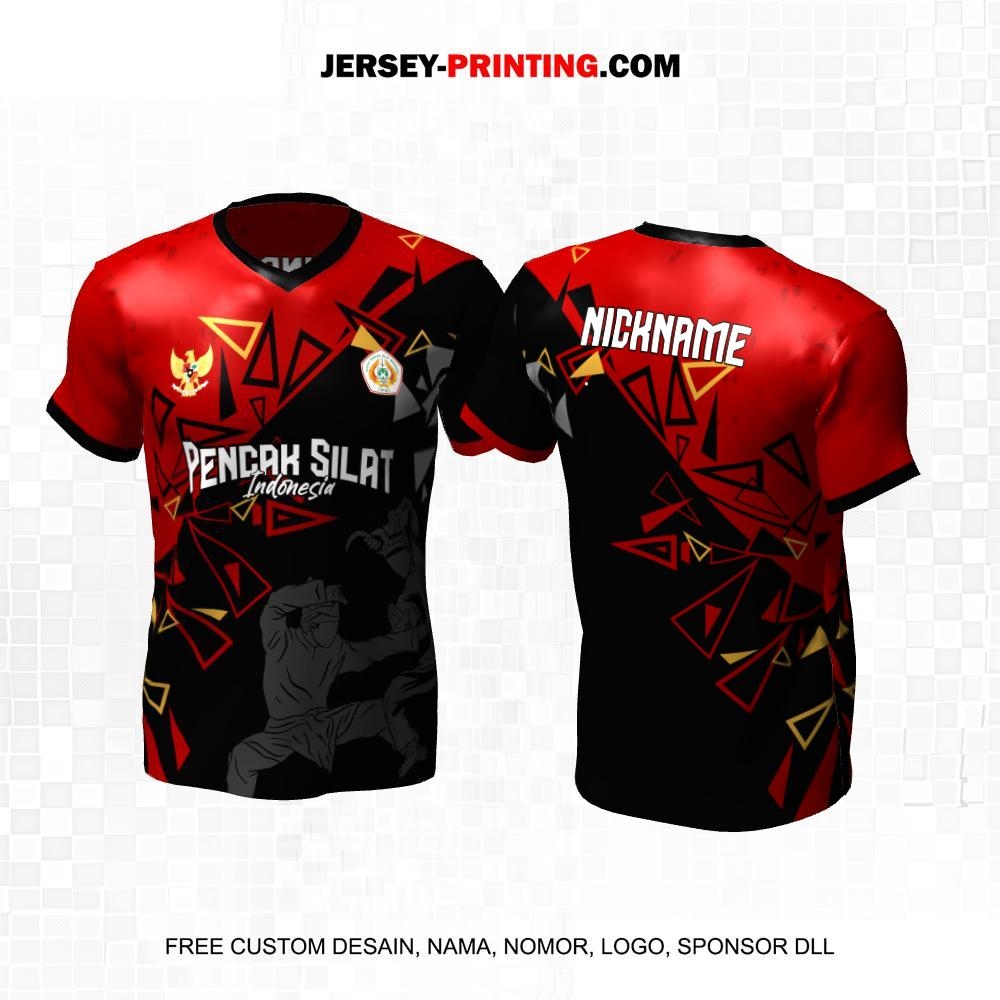 Jersey Pencak Silat Hitam Maroon Motif Abstrak Segitiga 111