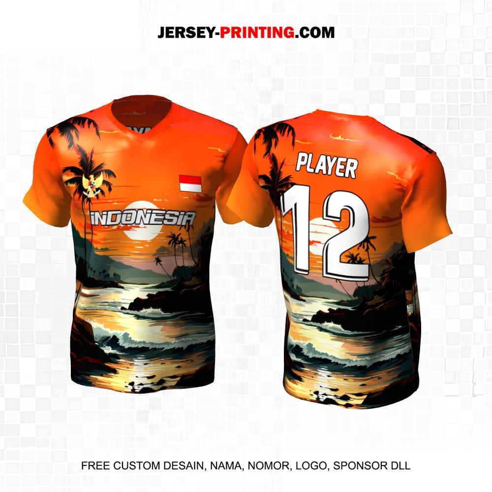 Jersey Futsal Orange Motif Pemandangan Alam Pantai 393