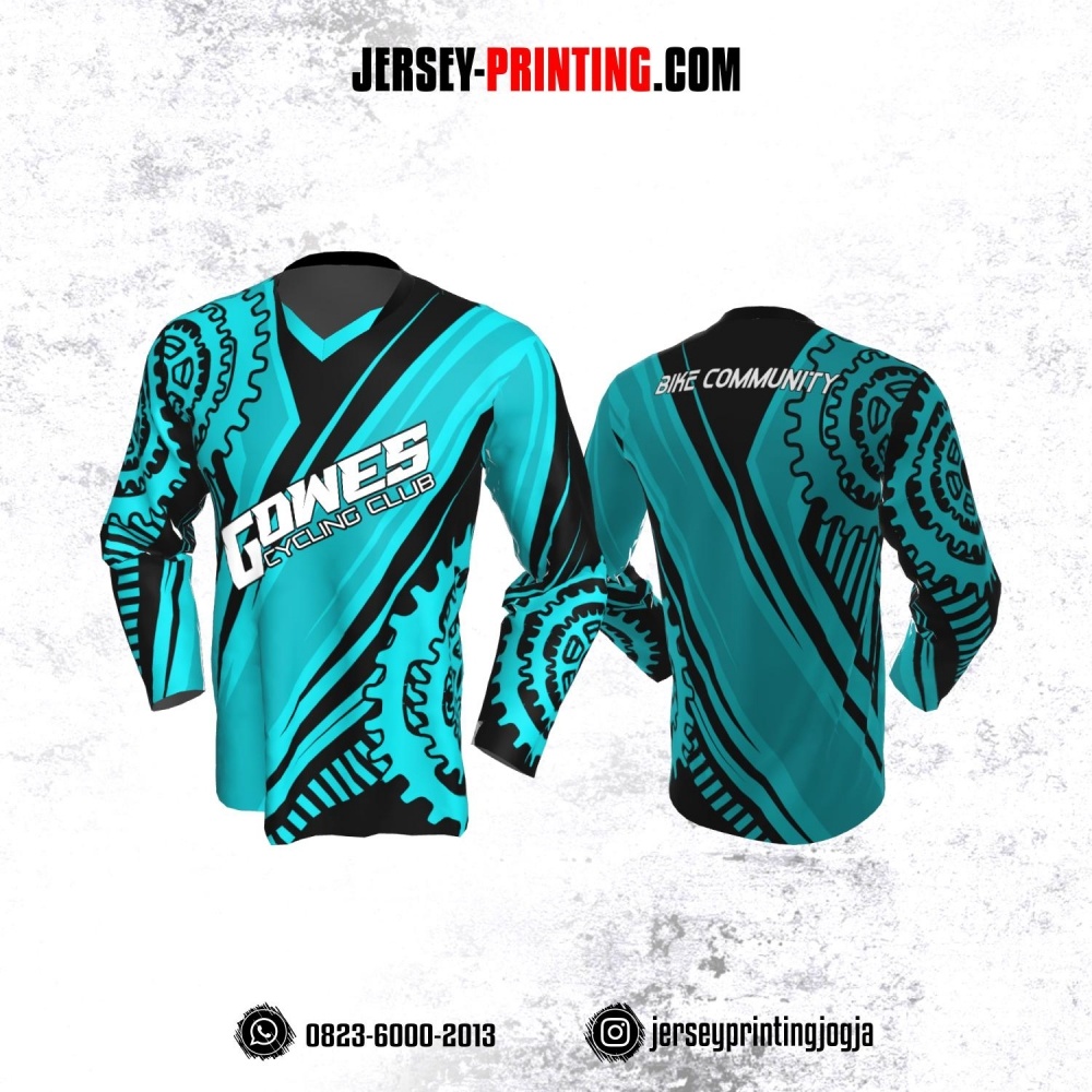 Jersey Gowes Sepeda Biru Aqua Hitam Gir Lengan Panjang