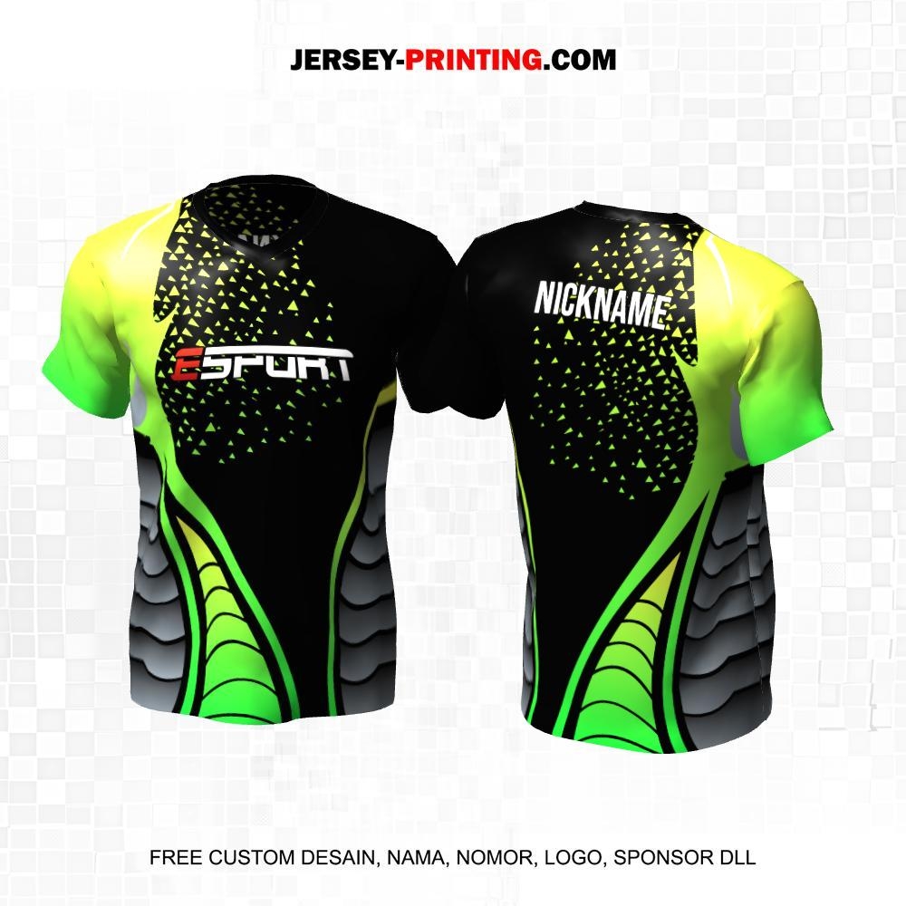 Jersey Gaming Esports Hitam Hijau Abu Motif Abstrak 66