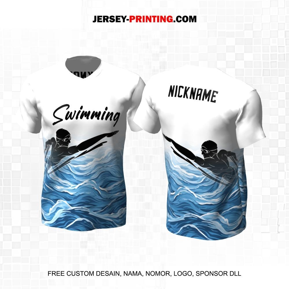 Jersey Renang Biru Putih Motif Ombak 9