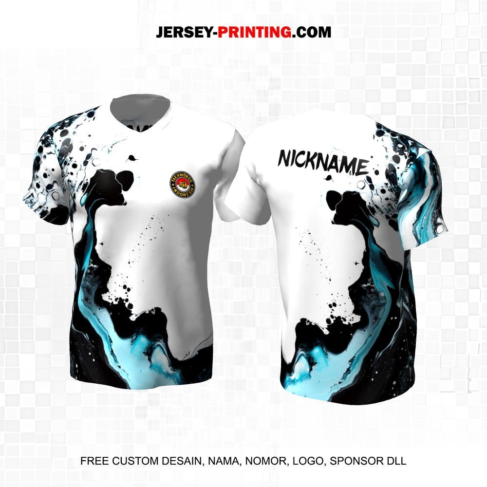 Jersey Taekwondo Putih Hitam Biru Motif Abstrak 84