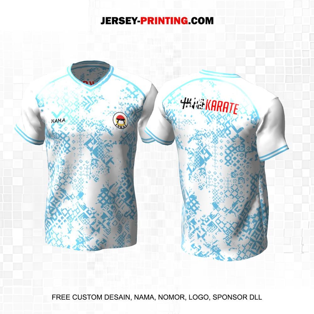 Jersey Karate Putih Biru Motif Abstrak 88