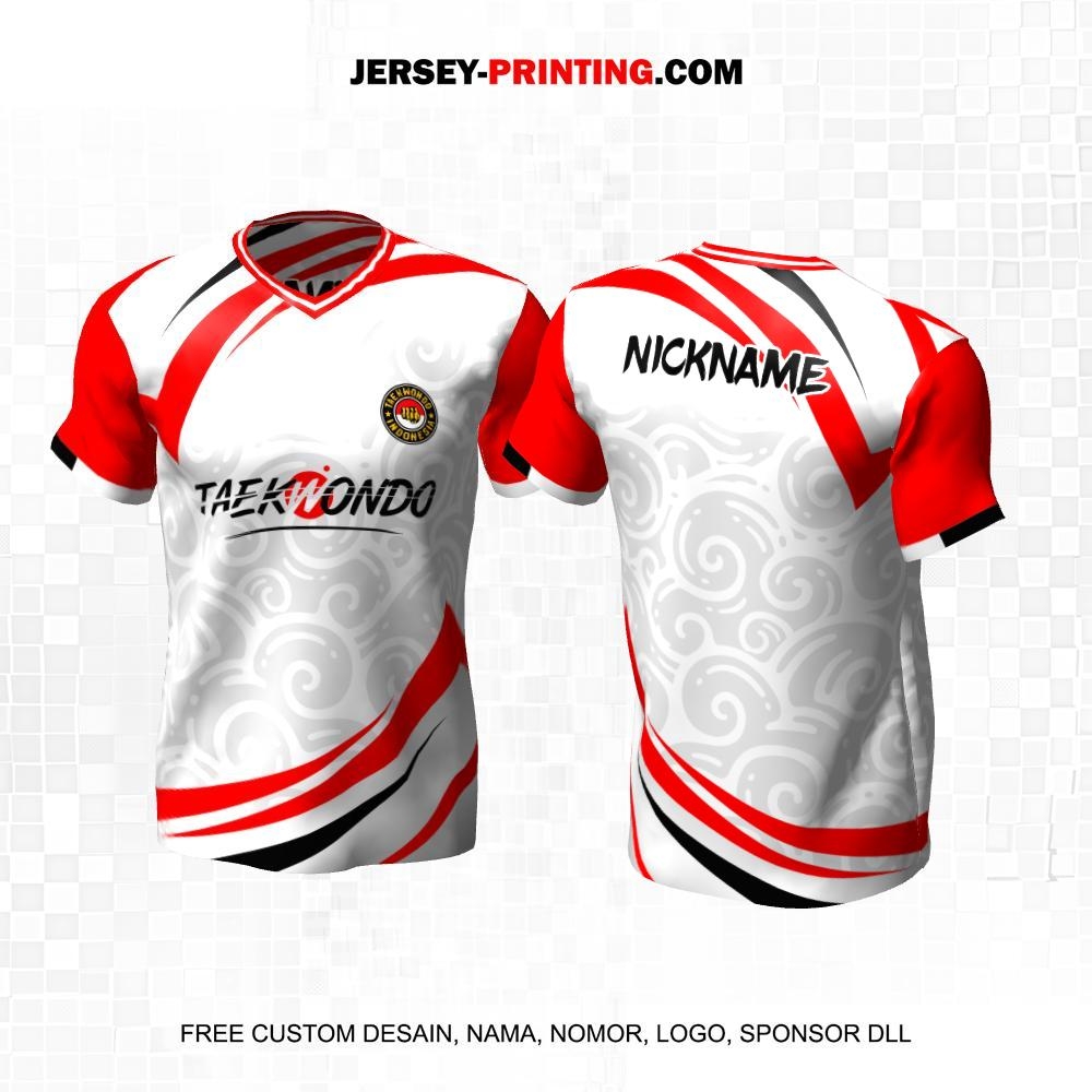 Jersey Taekwondo Putih Motif Abstrak Geometris 91