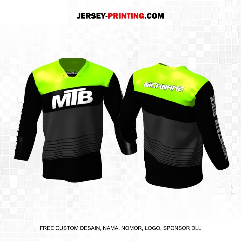 Jersey Gowes Sepeda Downhill Hitam Hijau Abu Motif Garis 76