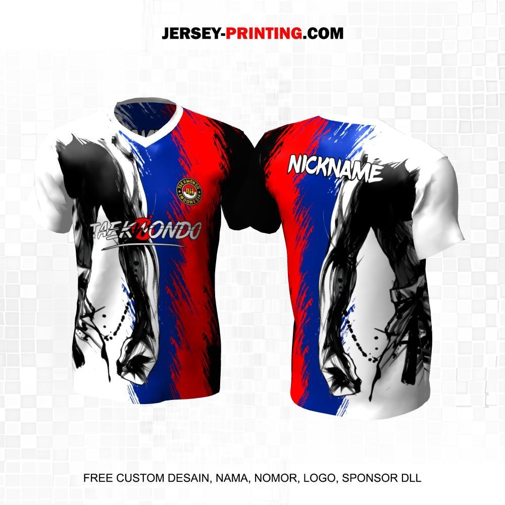 Jersey Taekwondo Putih Hitam Merah Biru Motif Abstrak 95