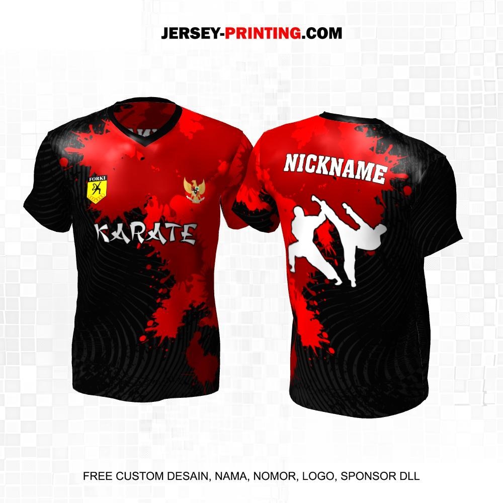Jersey Karate Hitam Merah Motif Abstrak Splash 104