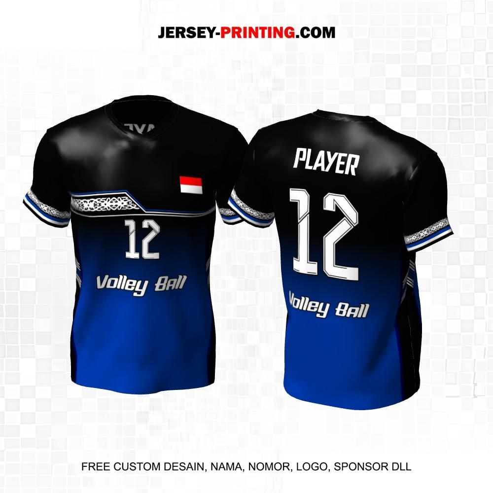 Jersey Volly Hitam Biru Motif Batik 129