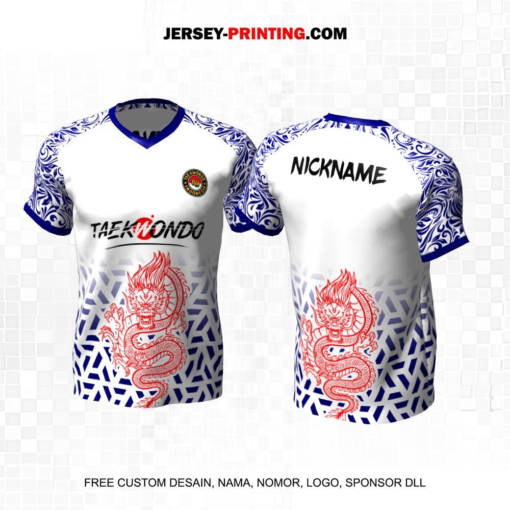 Jersey Taekwondo Putih Motif Batik Naga Geometris 125