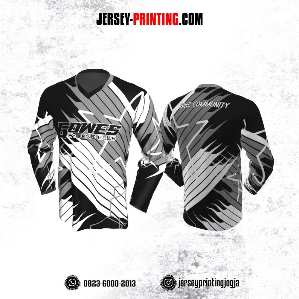 Jersey Gowes Sepeda Abu Hitam Putih Strip Lengan Panjang