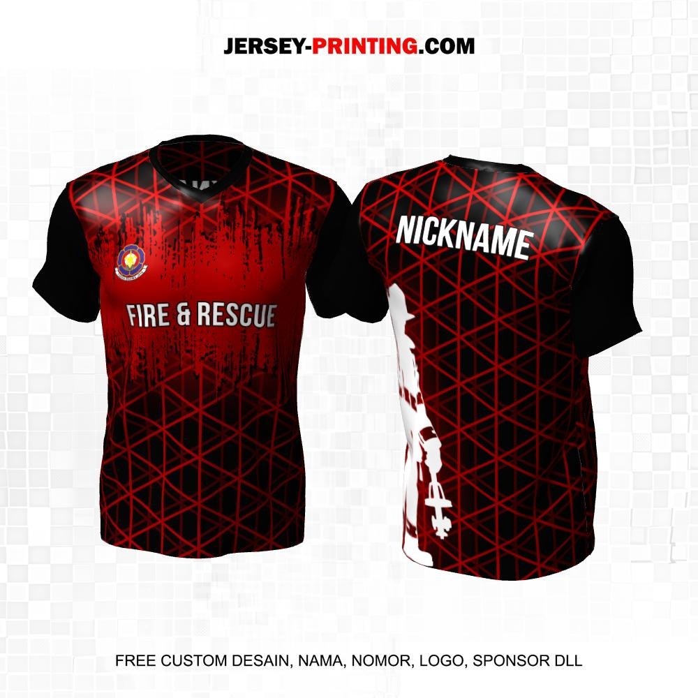 Jersey Damkar Pemadam Kebakaran Hitam Maroon Motif Abstrak Geometris 11