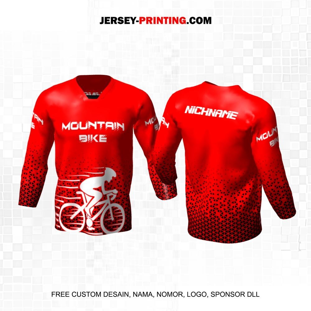 Jersey Gowes Sepeda Downhill Merah Motif Abstrak Segitiga 85