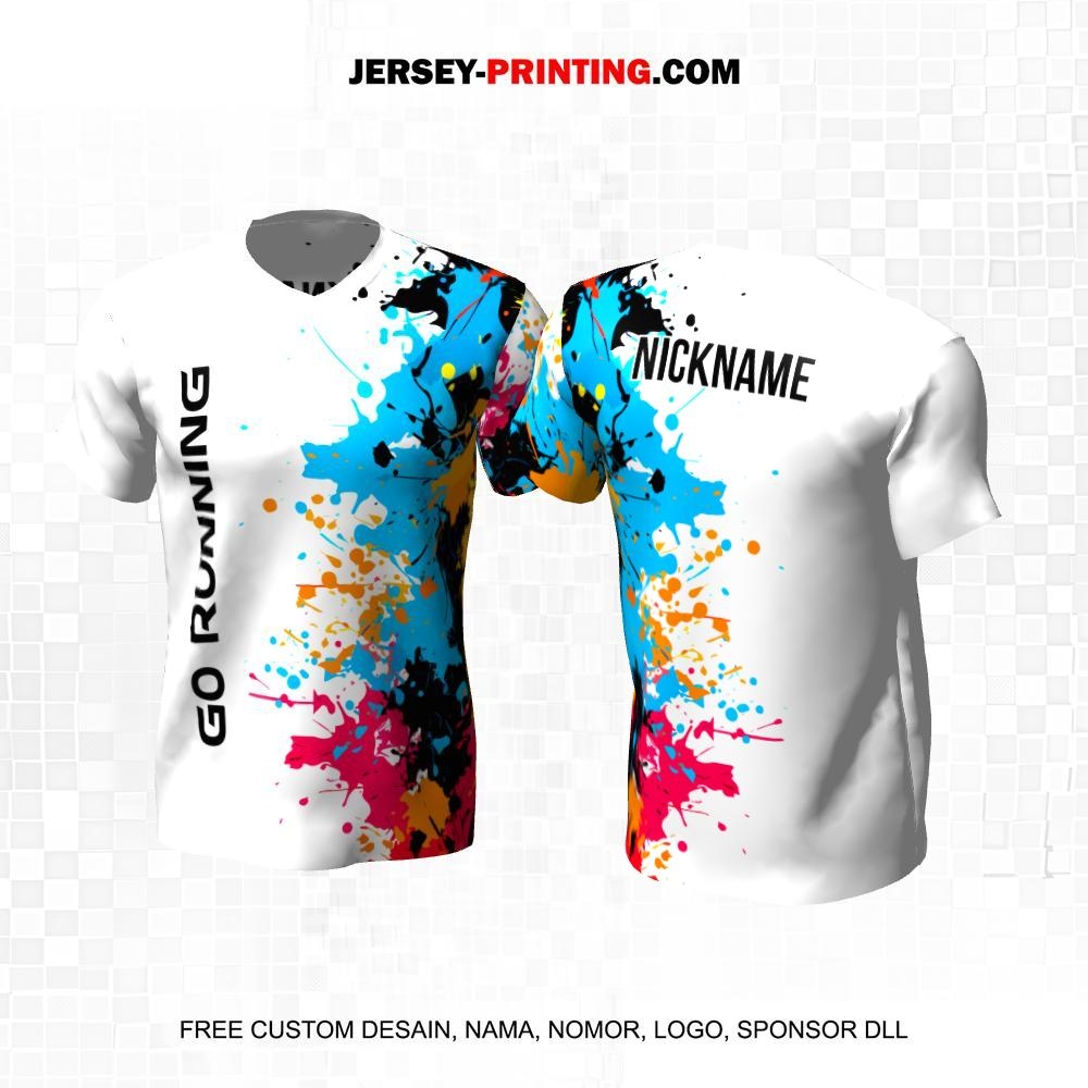 Jersey Lari Putih Pink Biru Motif Abstrak Brush 213