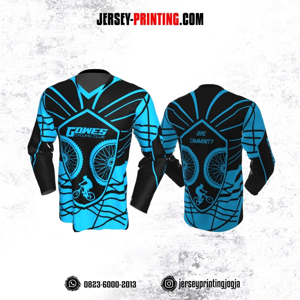 Jersey Gowes Sepeda Biru Hitam Garis Lengan Panjang