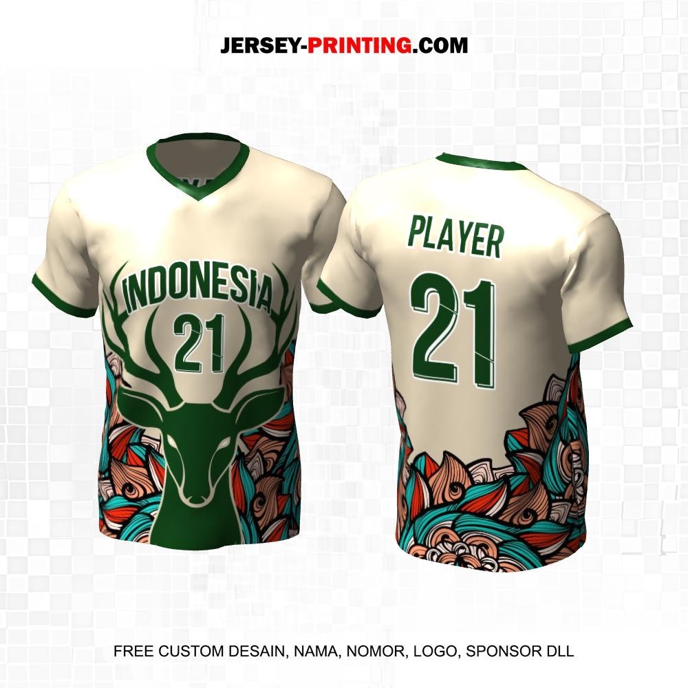 Jersey Basket Krem Muda Motif Batik Rusa 36
