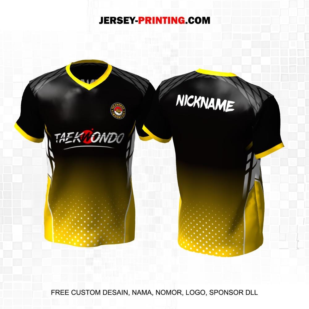 Jersey Taekwondo Hitam Kuning Motif Abstrak Polkadot 130