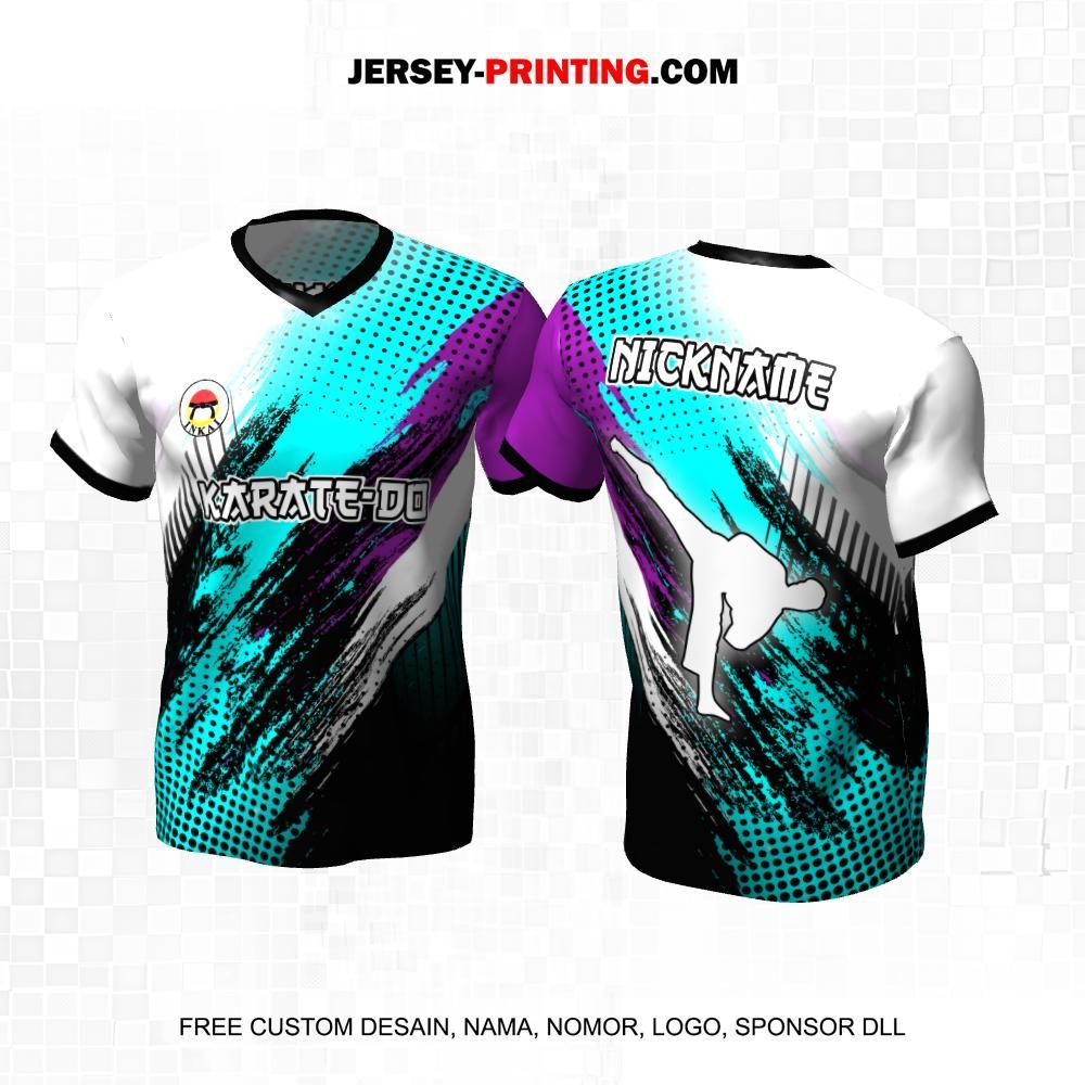 Jersey Karate Putih Hitam Ungu Tosca Motif Abstrak Polkadot 140