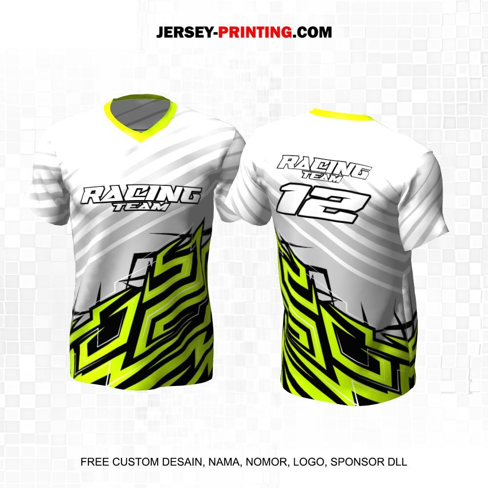Jersey Racing Putih Abu Hijau Motif Abstrak 135