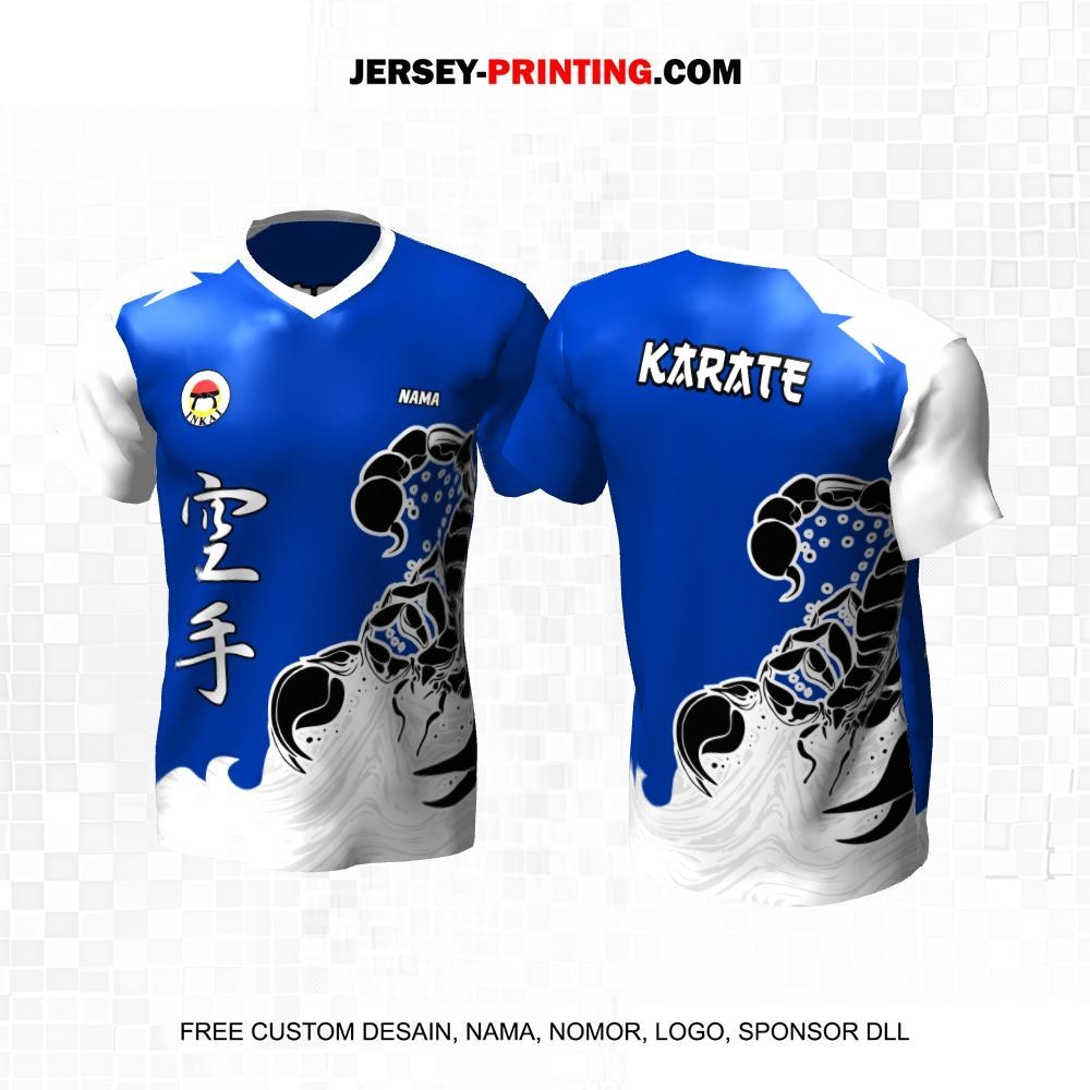 Jersey Karate Biru Putih Motif Abstrak Liquid Scorpio 143
