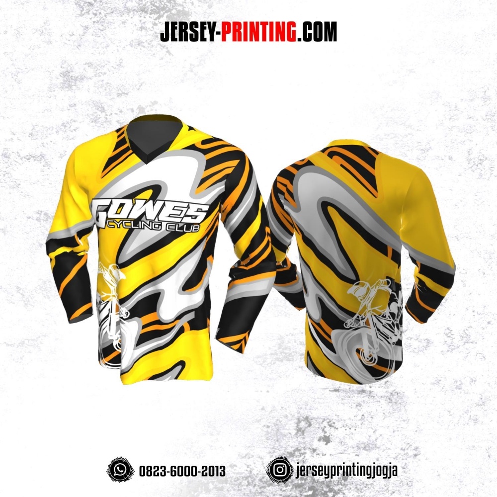 Jersey Gowes Sepeda Kuning Abu Hitam Putih Lengan Panjang