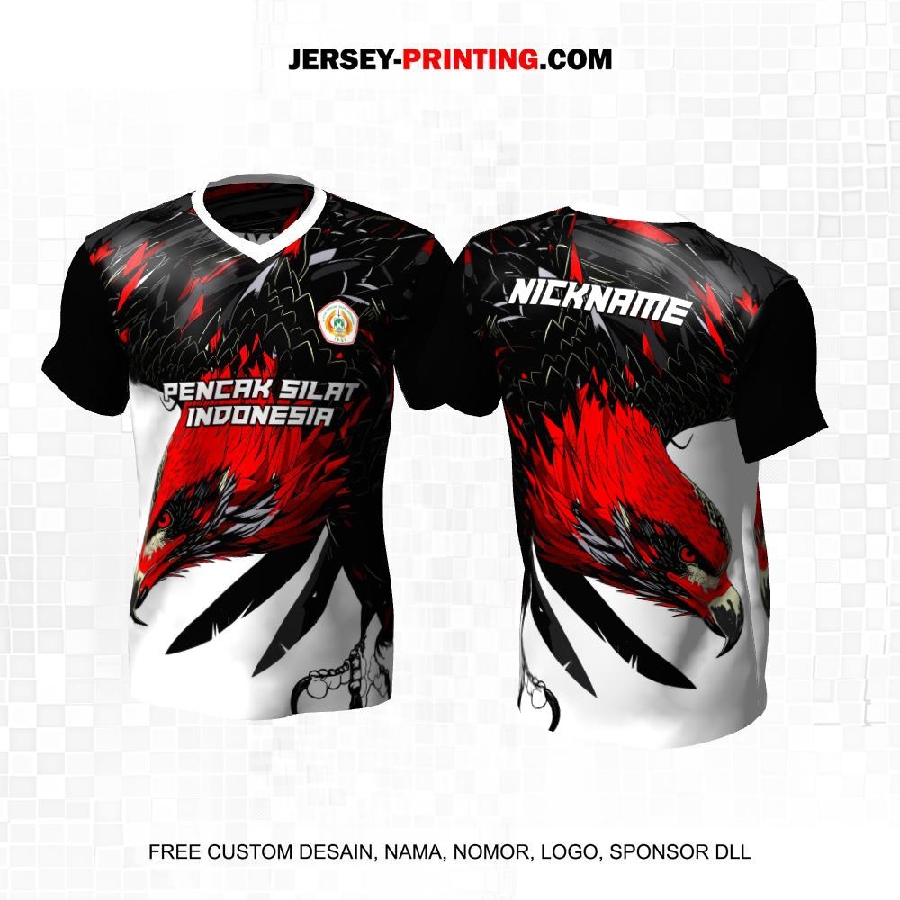 Jersey Pencak Silat Hitam Putih Merah Motif Elang 234