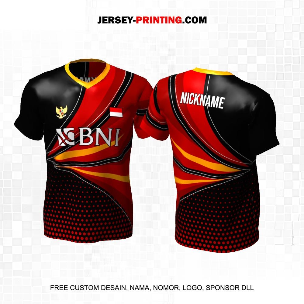 Jersey Badminton Hitam Merah Motif Abstrak Polkadot 129