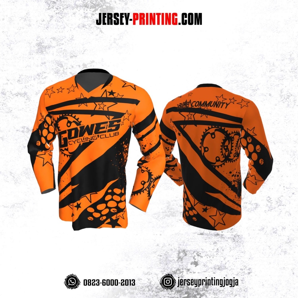 Jersey Gowes Sepeda Orange Hitam Bintang Lengan Panjang