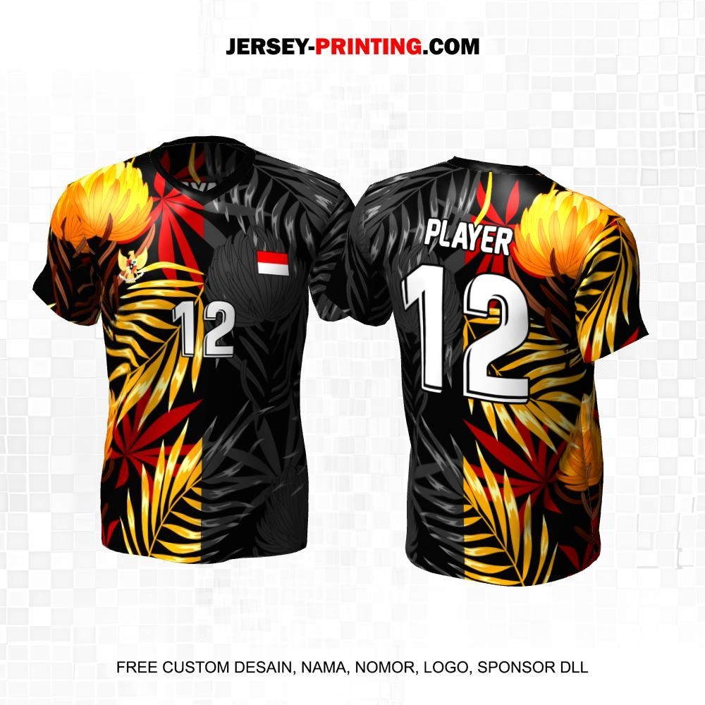 Jersey Volly Hitam Kuning Abu Motif Daun Bunga 170